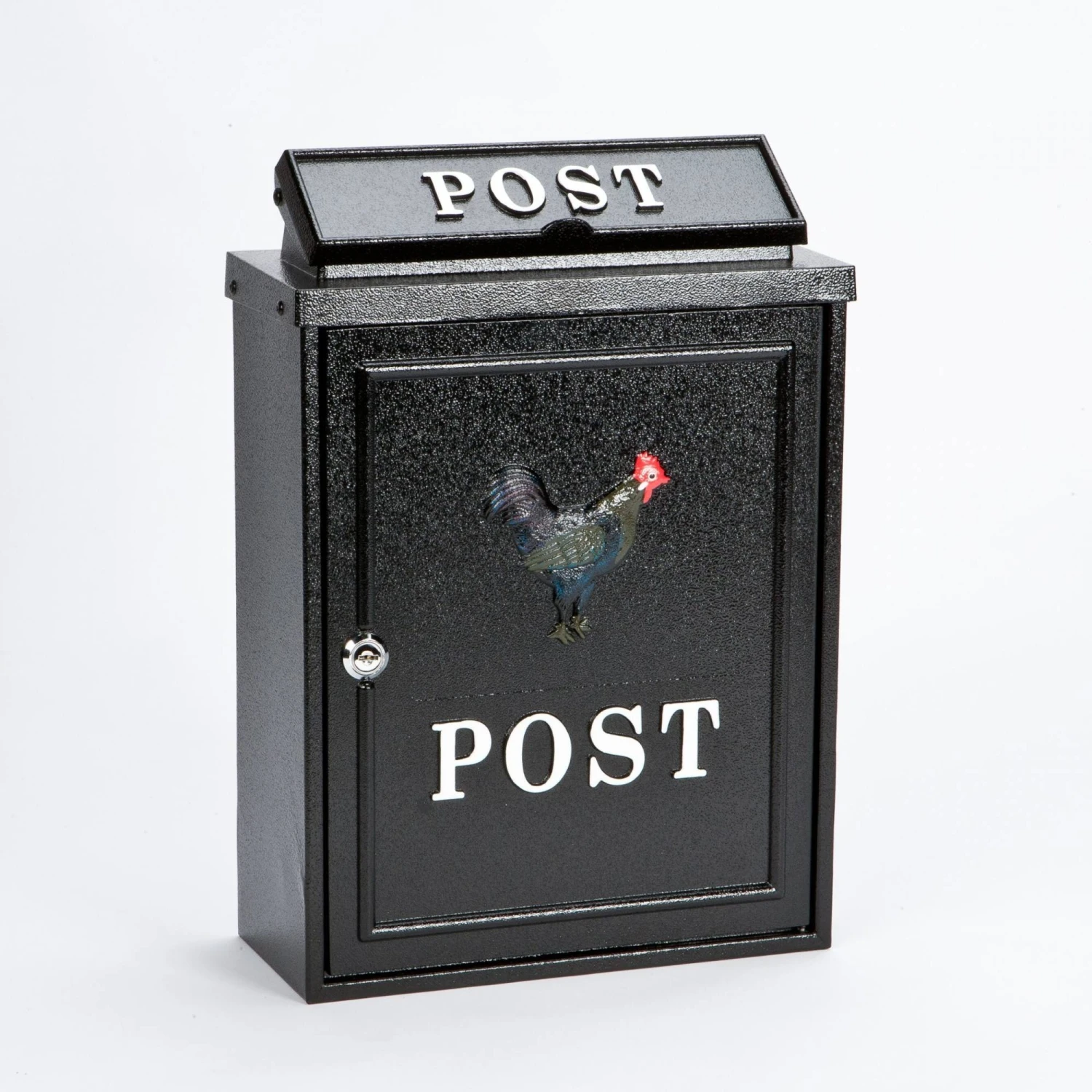 This Cockerel Wall Mounted Post Box is made from thick cast aluminium, finished in black with a luxurious hand painted Cockerel design on the front of the box.