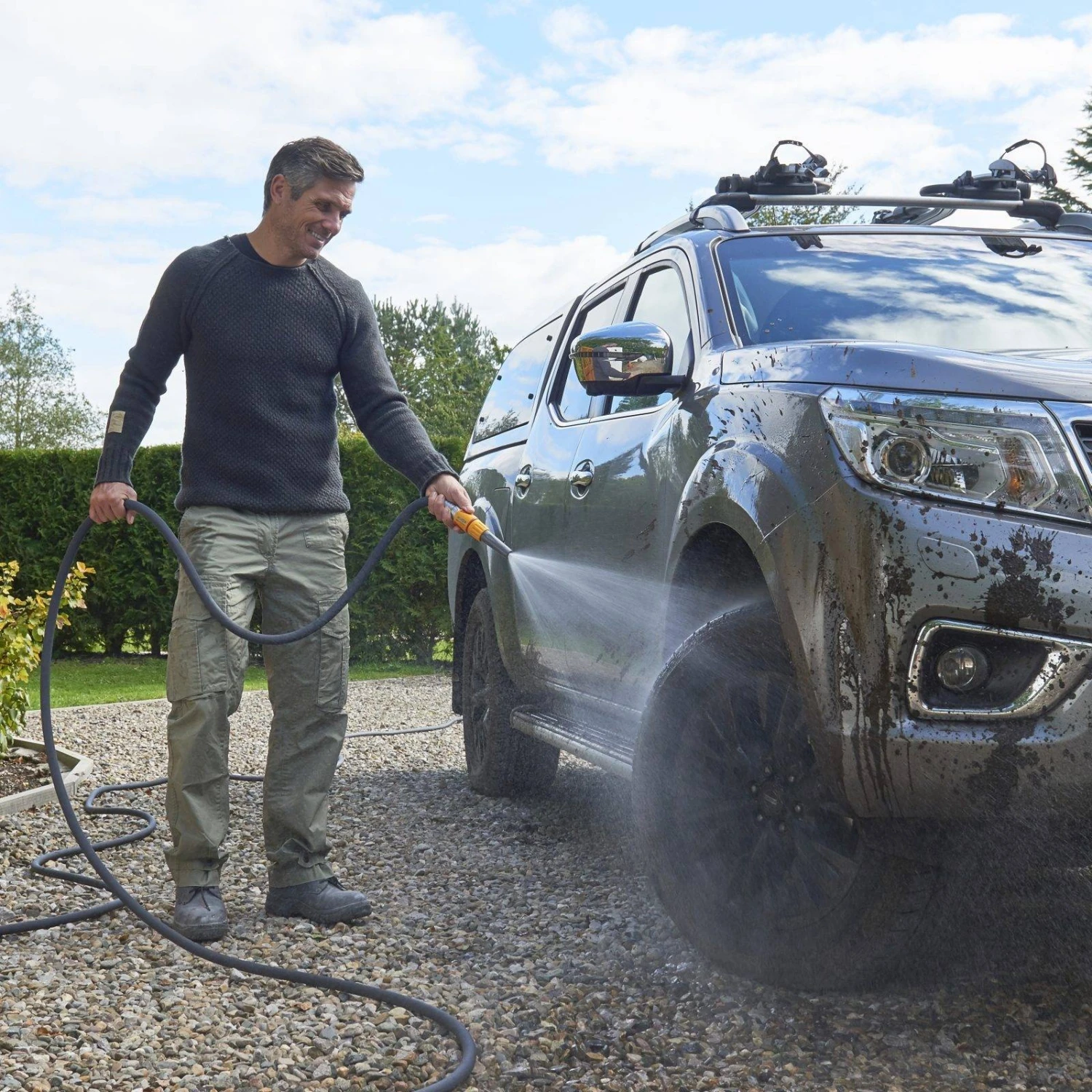 New advanced hybrid hose technology, up to 50% lighter, Kink free and easy to move, super tough and durable, tuff fibre durable woven fibre technology.